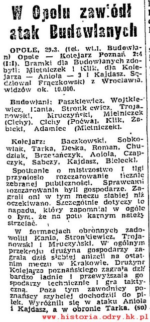 1953: Budowlani Opole – Kolejarz Poznań 2:4, Kolejarz Poznań – Budowlani Opole 0:0