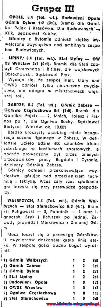 1951: Budowlani Opole – Górnik Bytom 1:2, Górnik Bytom – Budowlani Opole 3:0