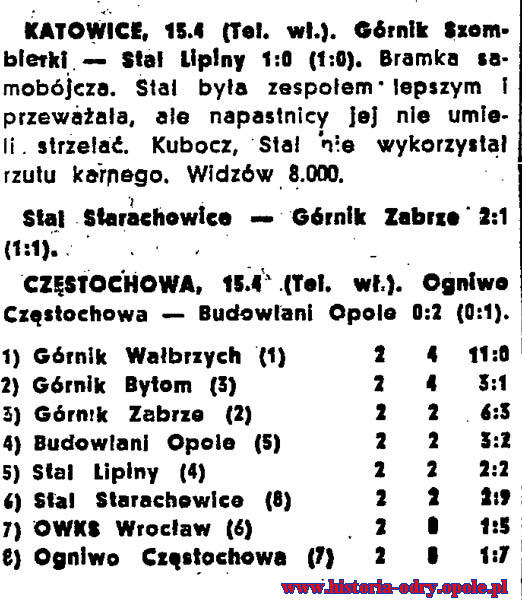 1951: Budowlani Opole – Ogniwo Częstochowa 3:2, Ogniwo Częstochowa – Budowlani Opole 0:2