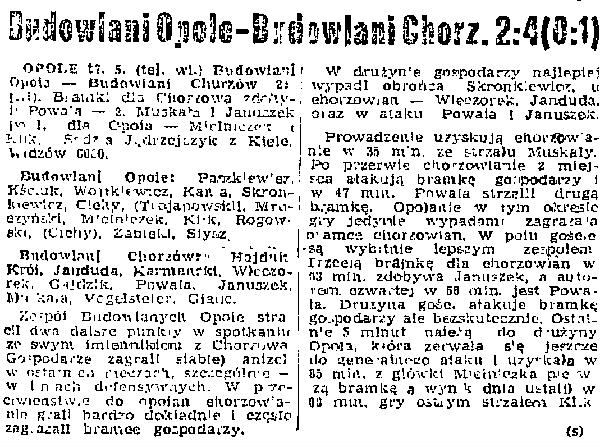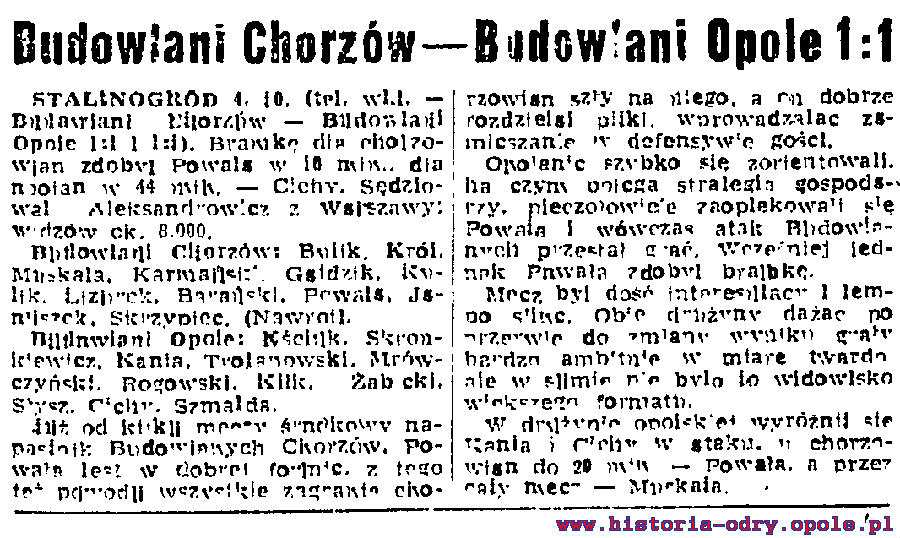 1955: Budowlani Opole – AKS Chorzów 6:0, AKS Chorzów – Odra Opole 4:3
